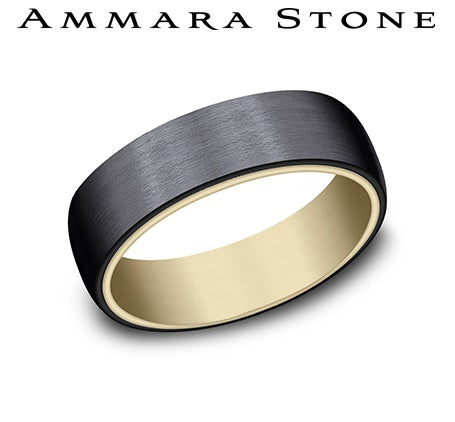 Ammara Stone, 6.5 mm Band Black Titanium with 14 Karat Yellow Gold Sleeve, Satin Finish.