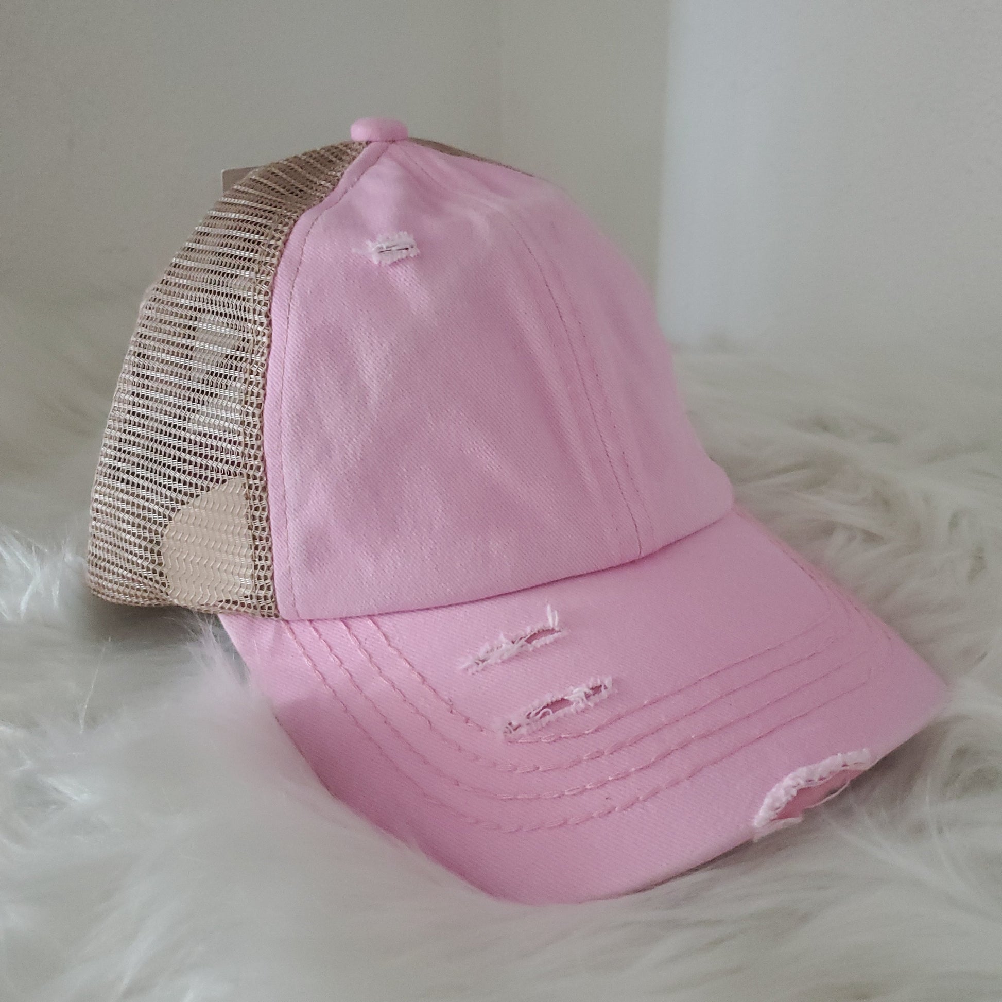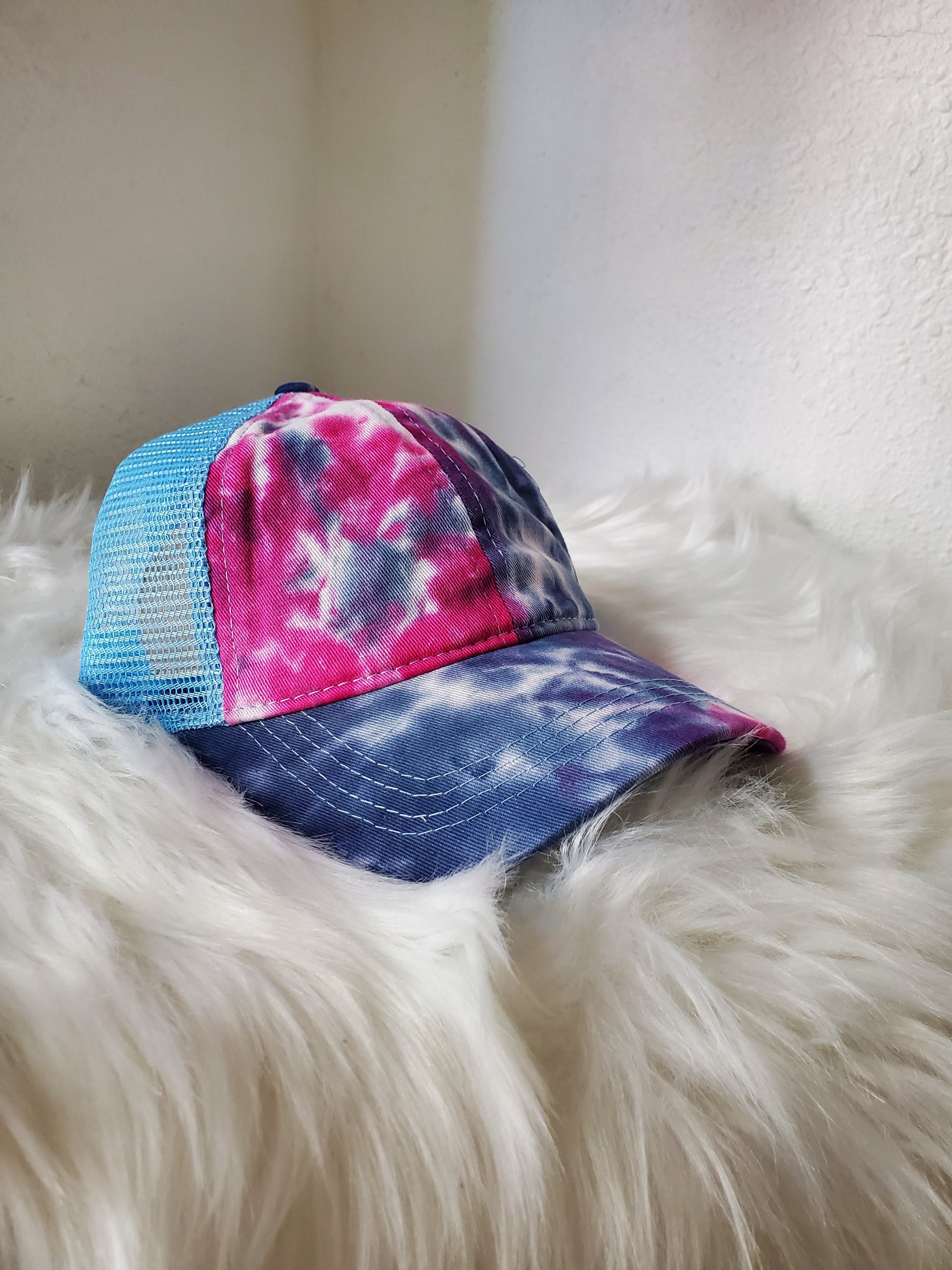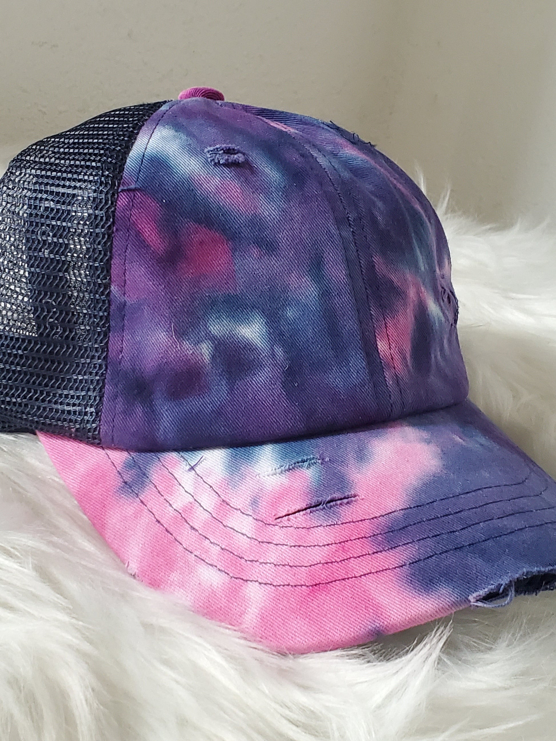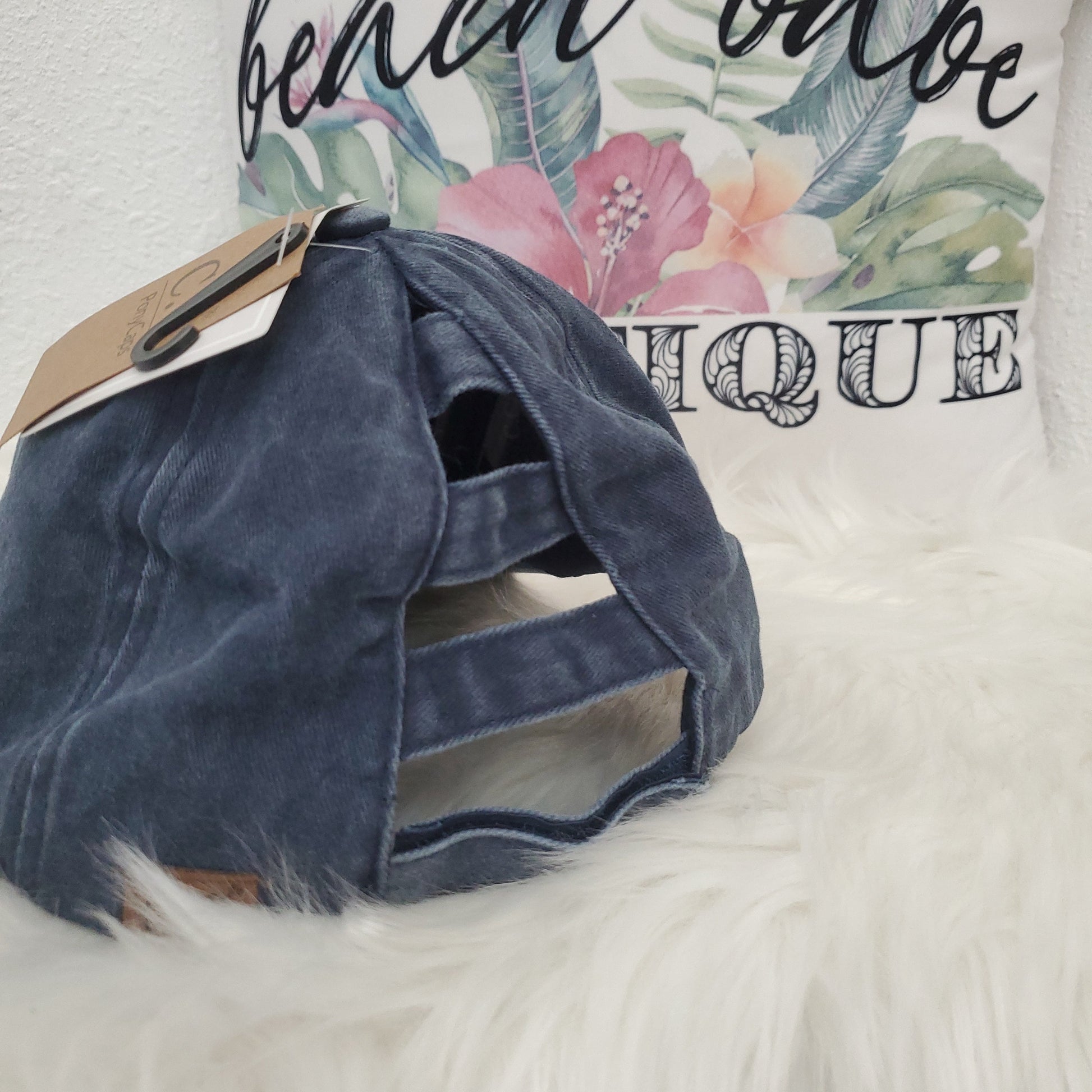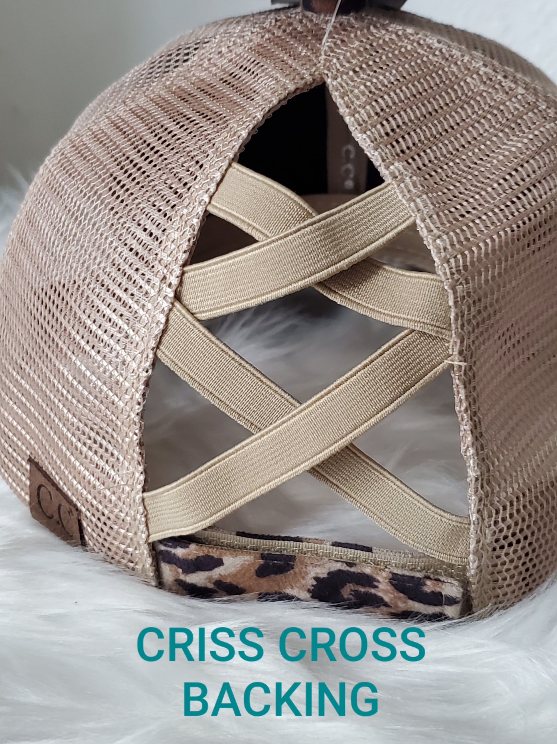 - Criss Cross -velcro adjustable strap with crisscrossed strap opening above for cute look and great fit, pull your hair through for pony or bun!