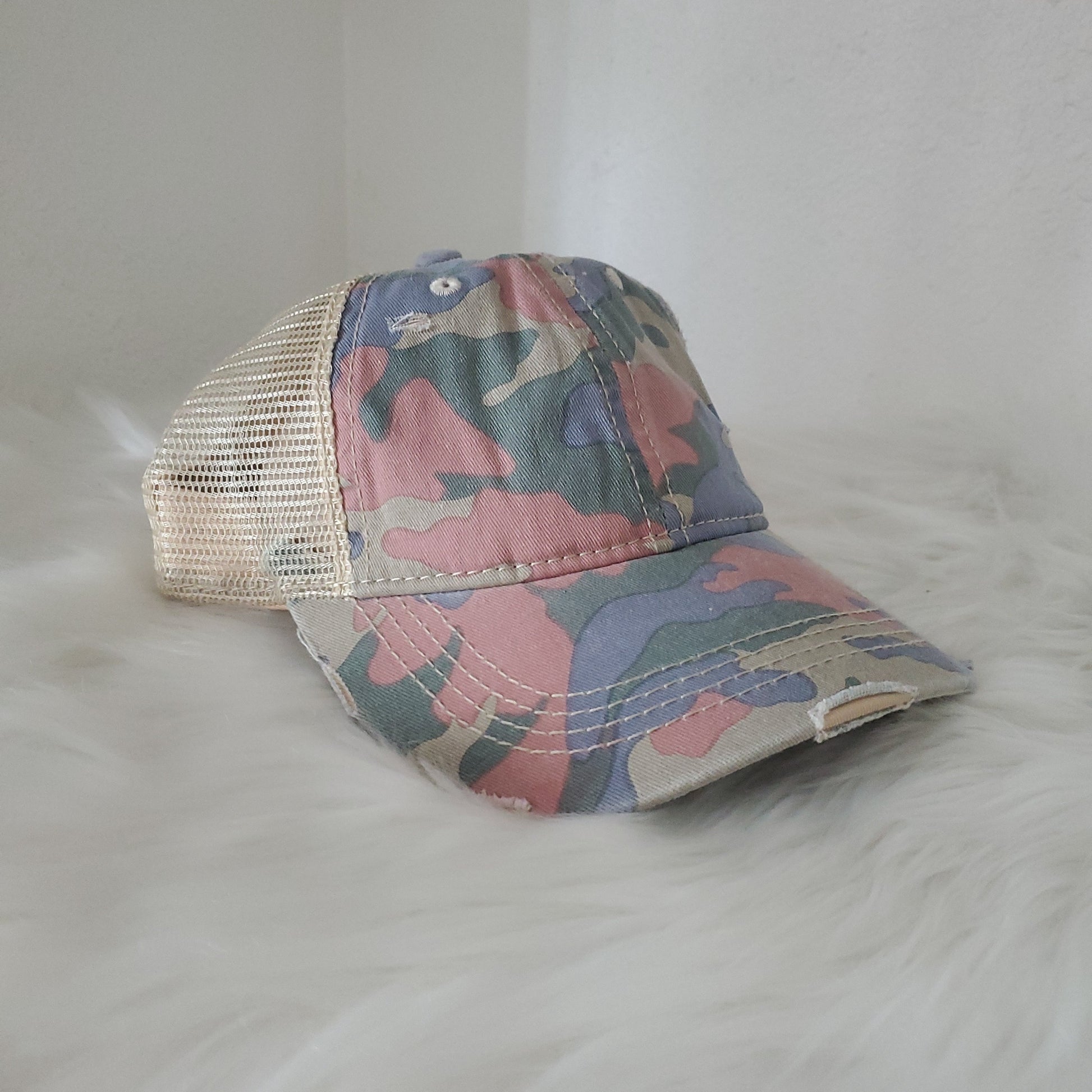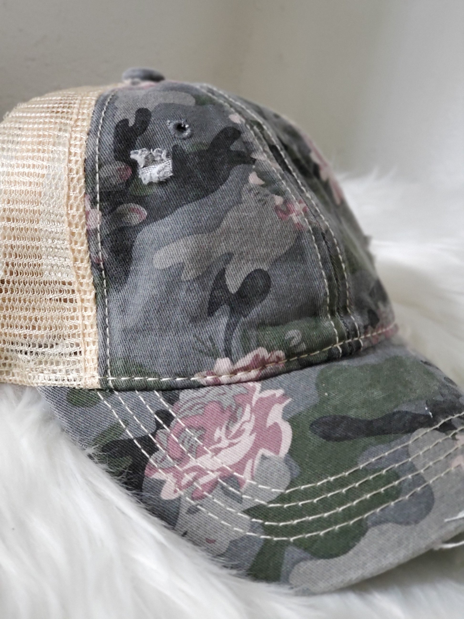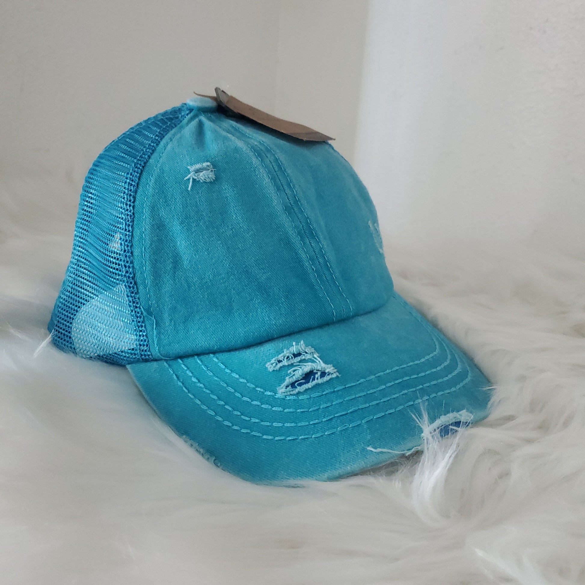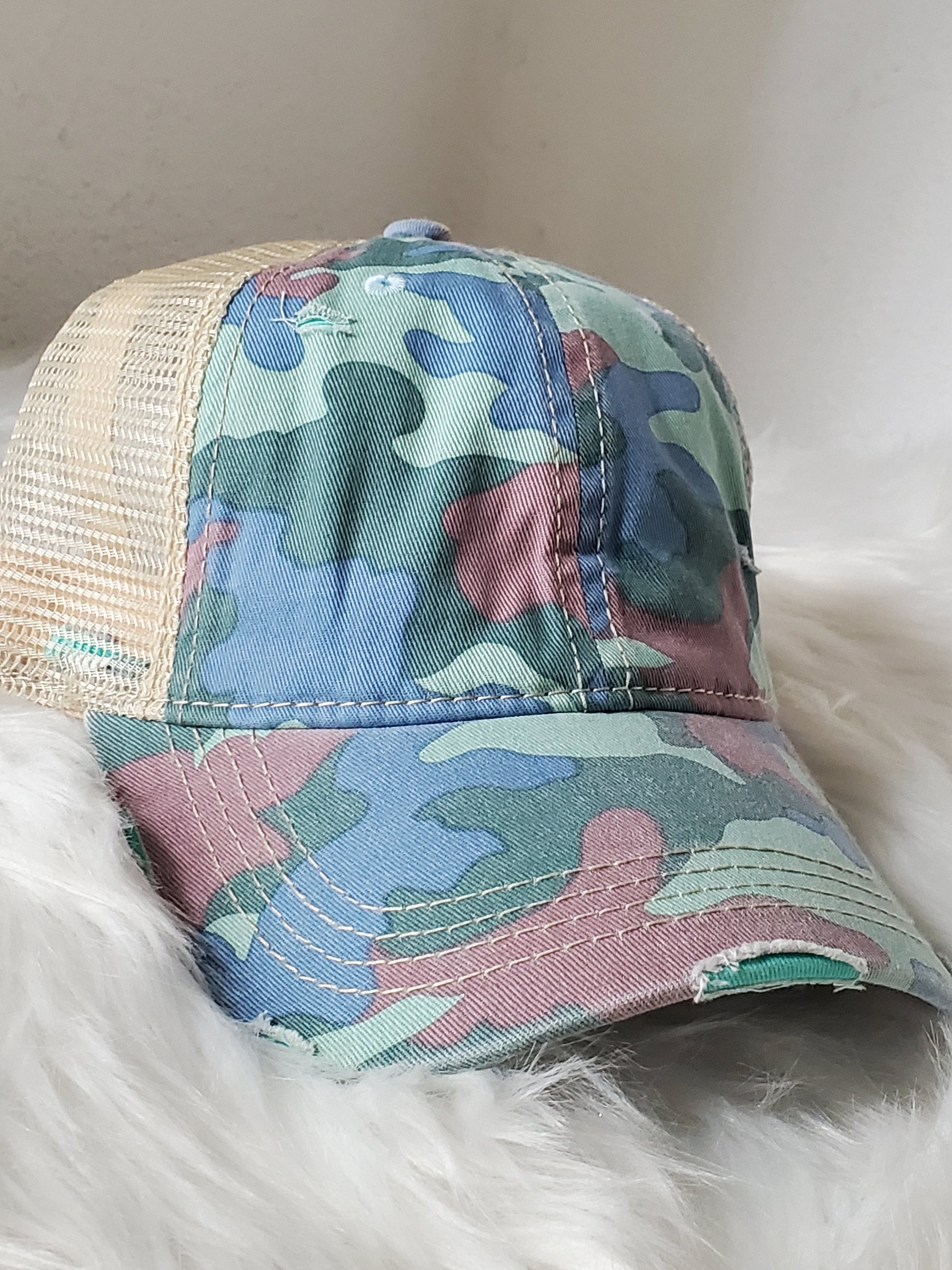 - Criss Cross -velcro adjustable strap with crisscrossed strap opening above for cute look and great fit, pull your hair through for pony or bun!