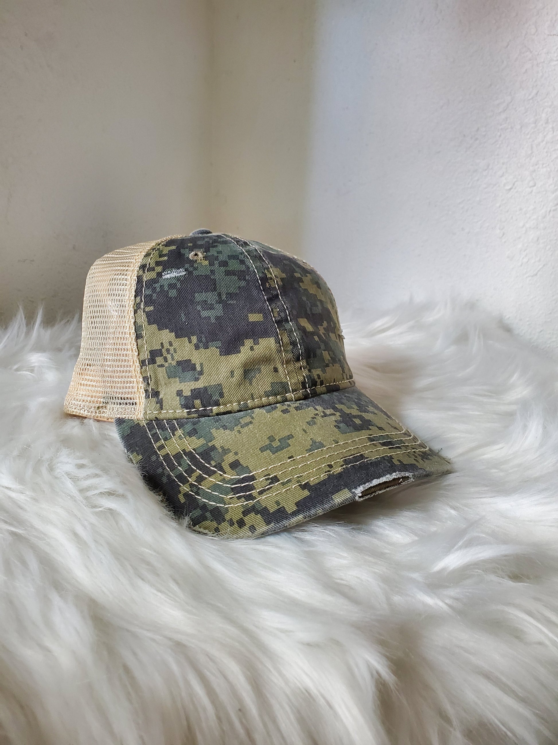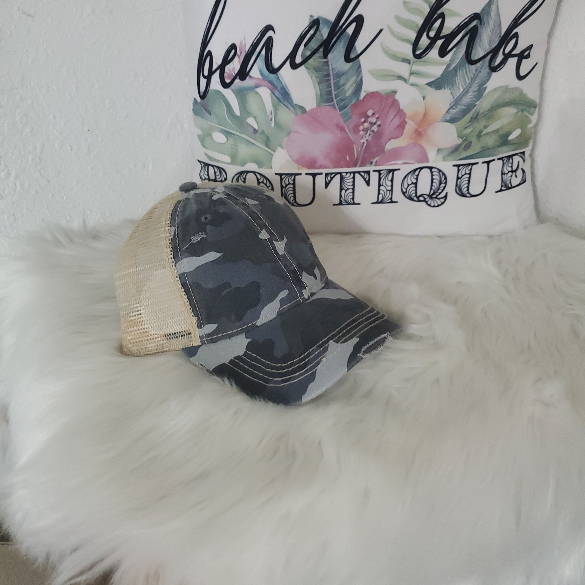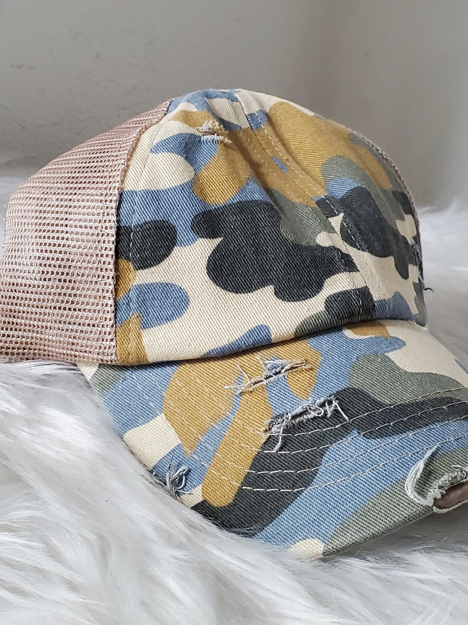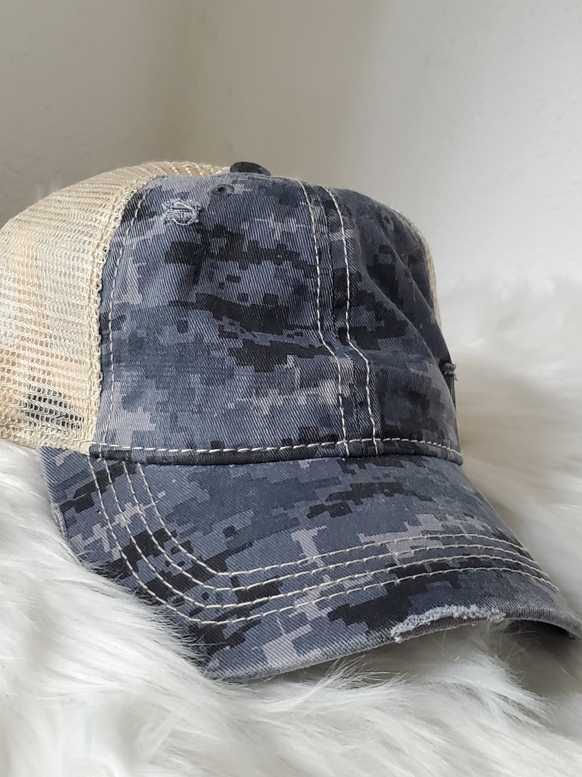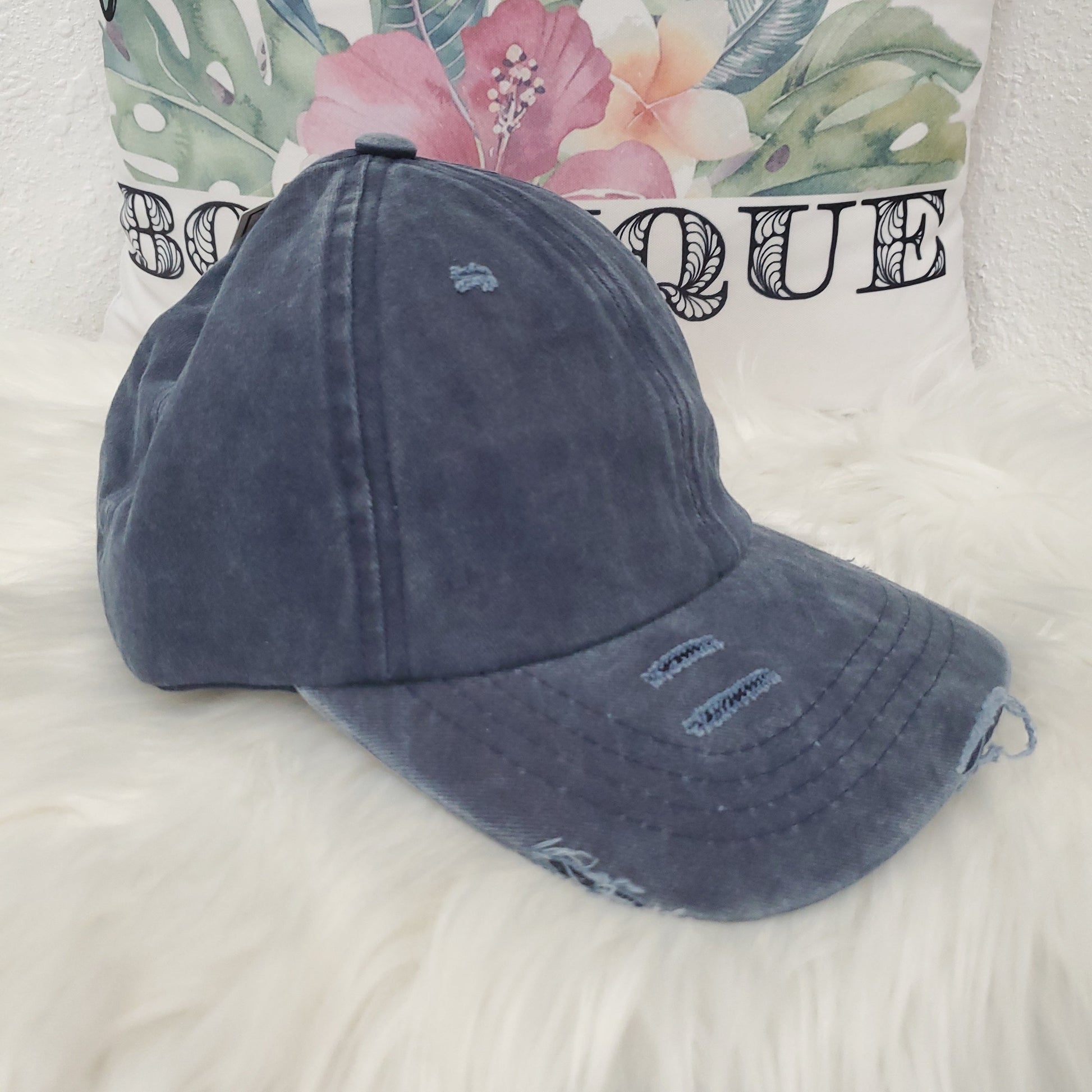 - Criss Cross -velcro adjustable strap with crisscrossed strap opening above for cute look and great fit, pull your hair through for pony or bun!