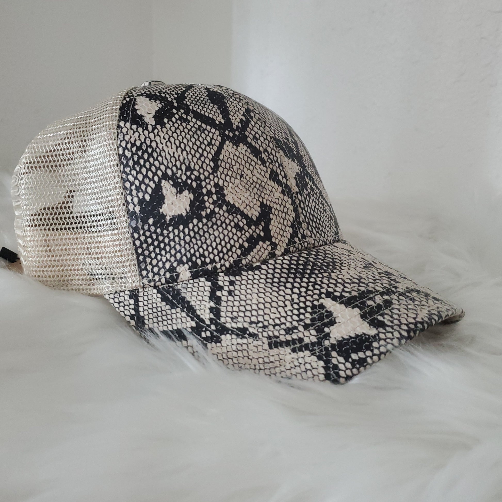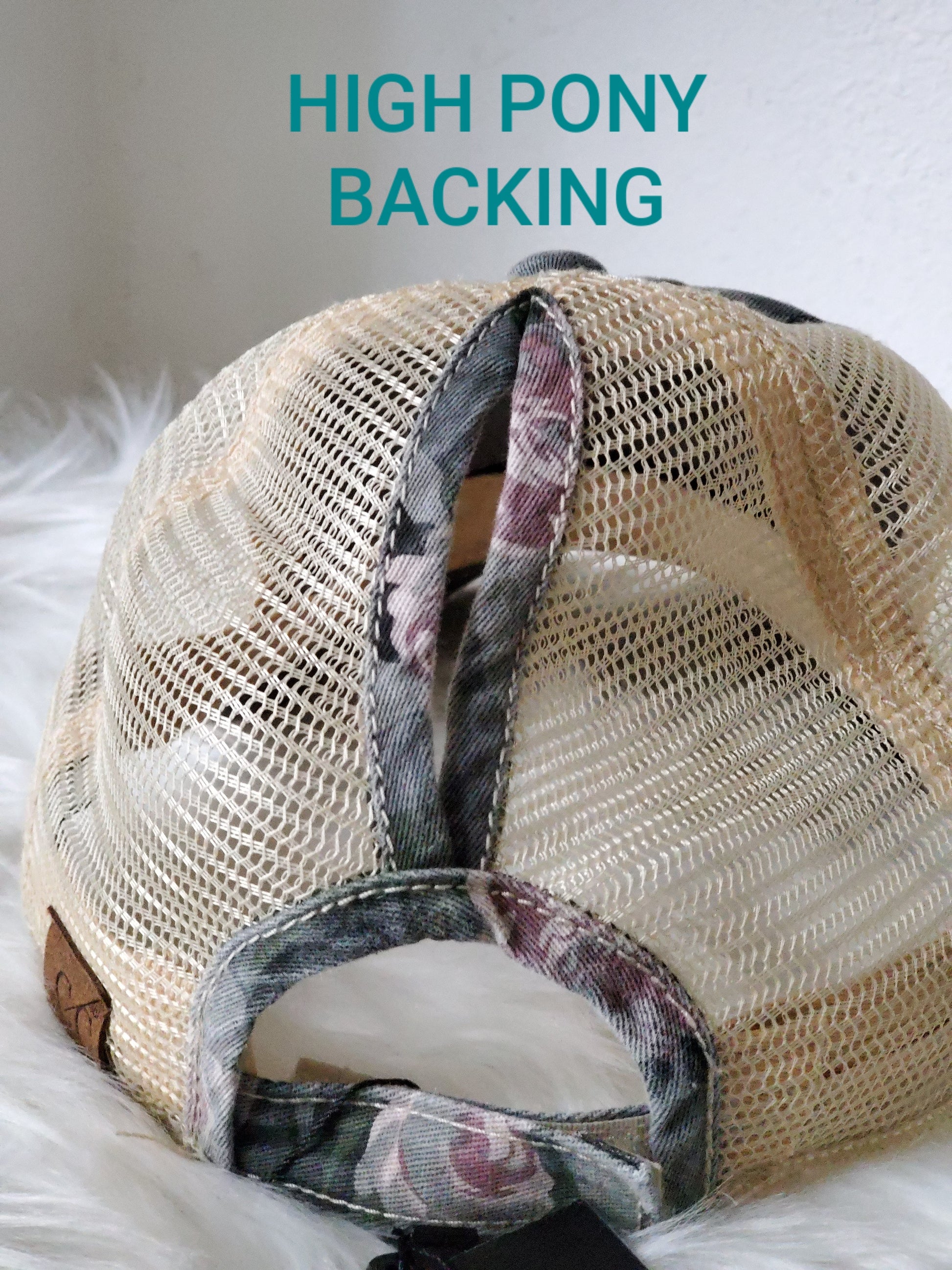 - High Pony -opening above for your pony/bun and a velcro adjustable strap