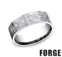 Benchmark Cobalt Chrome 7.5mm Comfort Fit Flat Profile Wedding Band with Laser Etched Cross Design. Finger Size 10